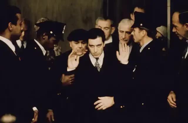 影片接管了交叉蒙太奇的叙事花样,答复柯里昂家眷两代教父在黑帮宇宙中的据说经由。
