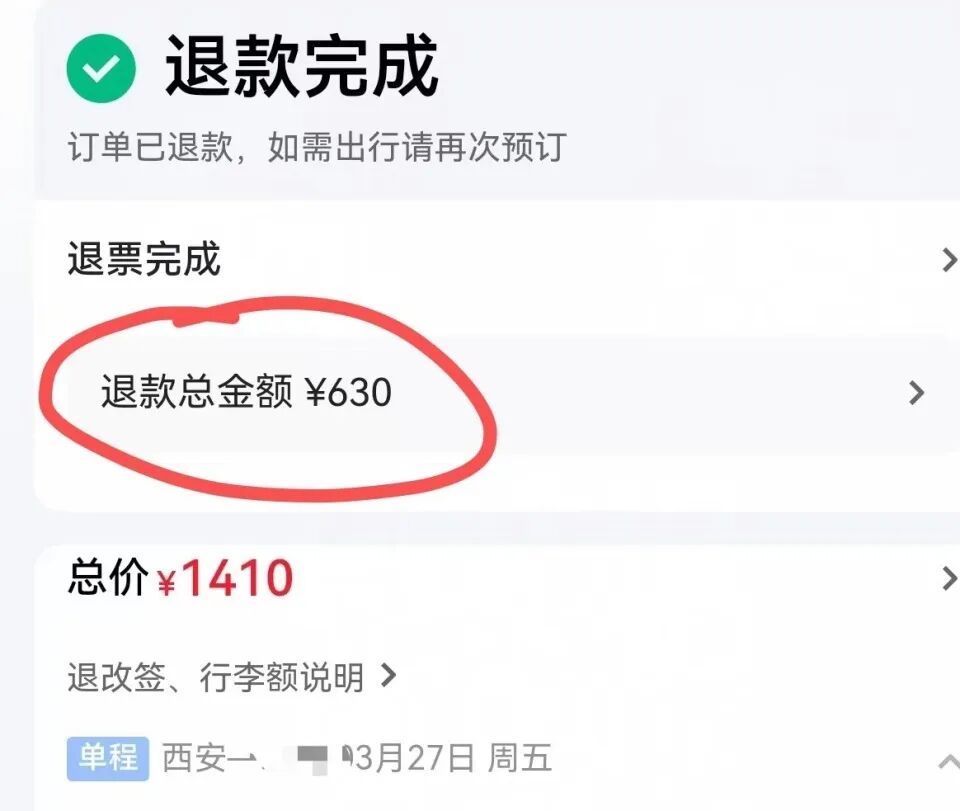 1410元机票下单后发现买错,退票被扣780元“下单到退款到账共2分15秒”
