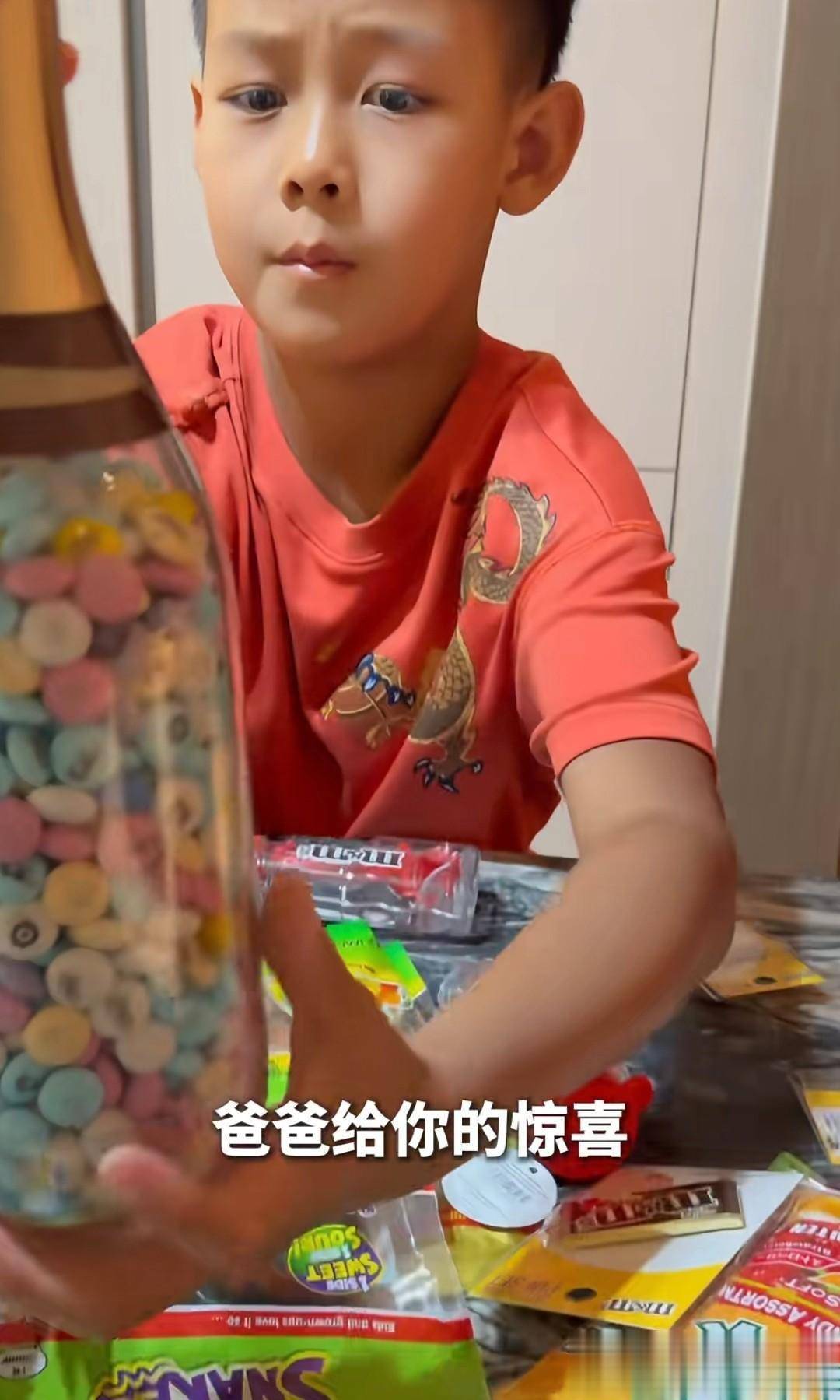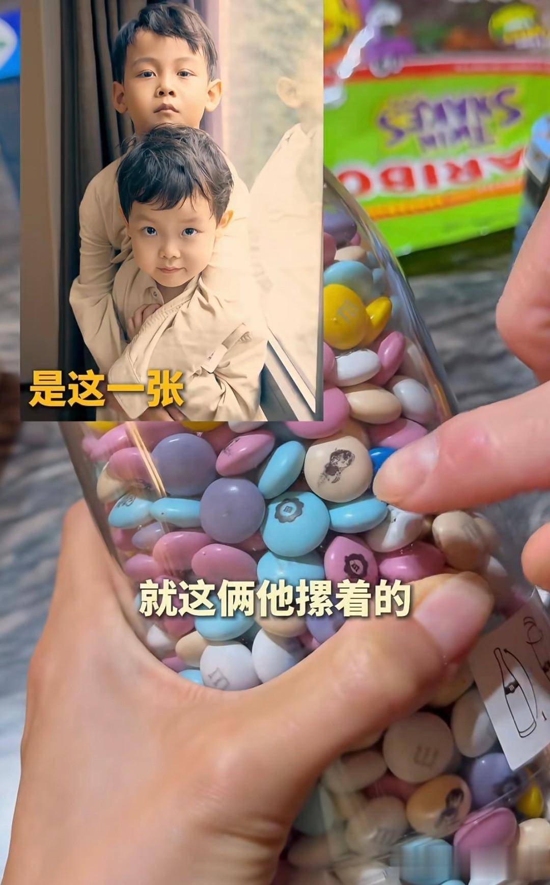 其中有一瓶糖果是王皓精心为俩娃准备的惊喜,上头印着海苔和海螺兄弟俩小技艺的合影,天然在糖上头稍稍有点迷糊,但爸爸的这份情意太艰涩了,王皓手机里一直存着俩孩子的多样相片,知谈能印在糖上头,专门作念了一大瓶带归来,父爱爆棚啊!