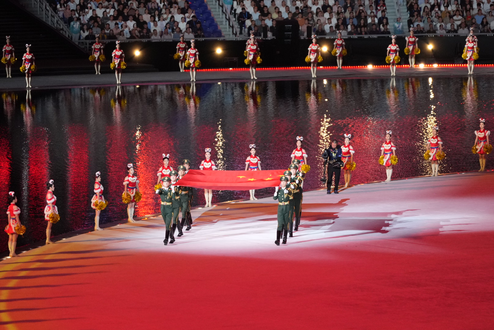 中华东说念主民共和国第十五届携带会开幕式11月9日晚在广东省广州市浩荡举行。五星红旗在颂赞故国BGM中入场,现场高清大图,沿途来看。
