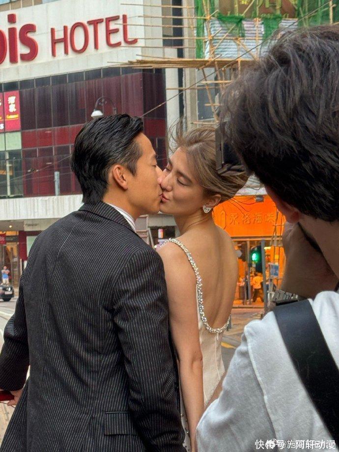 底下的相片,吴千语和施伯雄应该正在拍摄使命有关的相片,那会儿他们还莫得举办婚典。但在大街上,吴千语和施伯雄还是甜密亲吻了起来,这幅画面谁看了不说一句“高甜”啊。照实是看一次,就被甜一次。