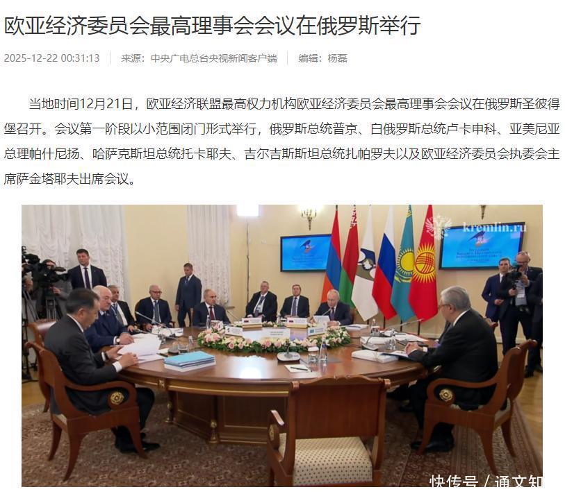 12月21日,俄总统普京主捏召开欧亚经济定约最高理事会会议,地方选在圣彼得堡。