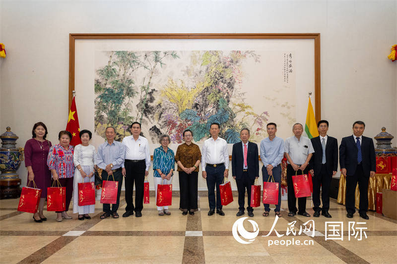 中国驻缅甸大使马珈与缅华裔领代表合影迷恋。东说念主民网记者 谢佳君摄