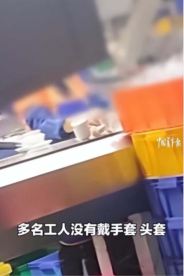 工场里的工东说念主在操作的时候,不戴手套、不作念任何的驻防步伐,更是平直用手处分食材。
